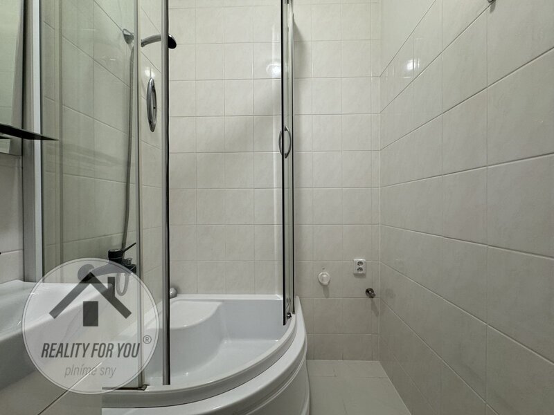 zděné jádro. Koupelna, která má dostatek místa pro pračku, sprchový kout